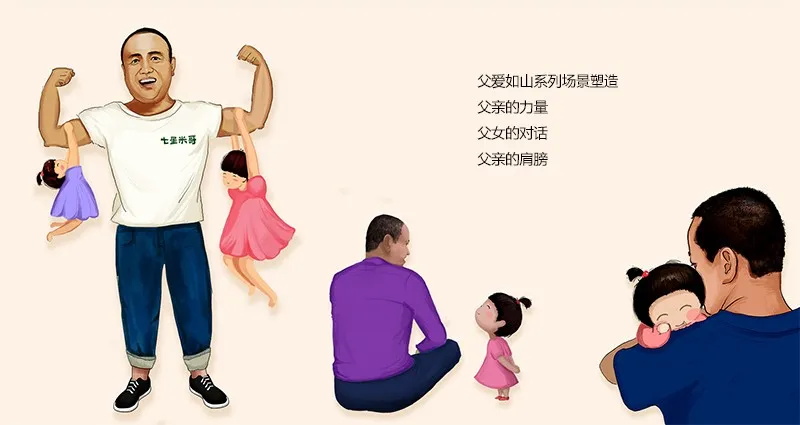 以及與兩個(gè)女兒互動(dòng)的父女情
