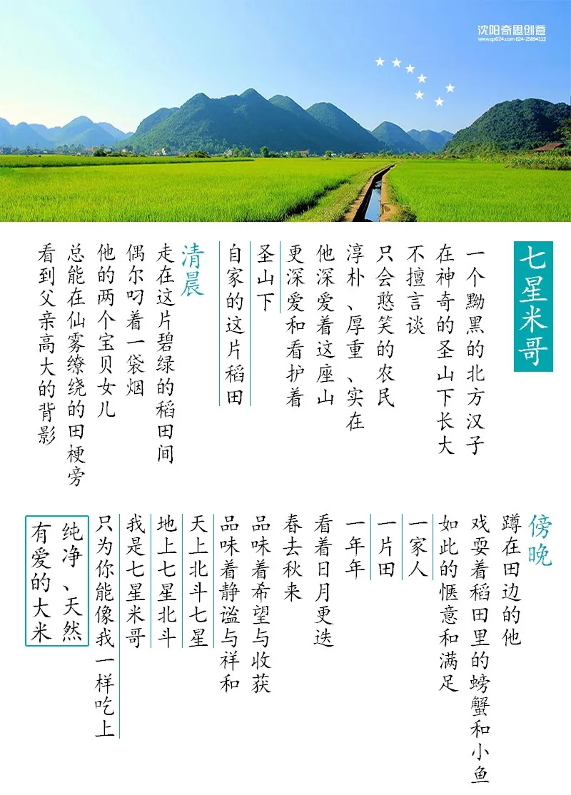 七星米哥是奇思創(chuàng)意為蔡總策劃的另一個(gè)品牌,最初的品牌創(chuàng)作是他已用了十多年的品牌星琪源,作者現(xiàn)在是倒敘