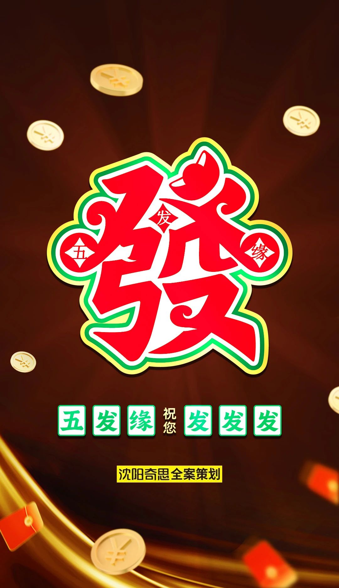 五發(fā)緣品牌名稱自帶吉祥、發(fā)財?shù)拿篮迷⒁猓?/span>基于品牌自身稟賦,奇思為五發(fā)緣創(chuàng)作了人人熟悉并喜愛的“發(fā)”字品牌視覺形象,并策劃了極具情緒價值的品牌口號:“五發(fā)緣,發(fā)發(fā)發(fā)”。